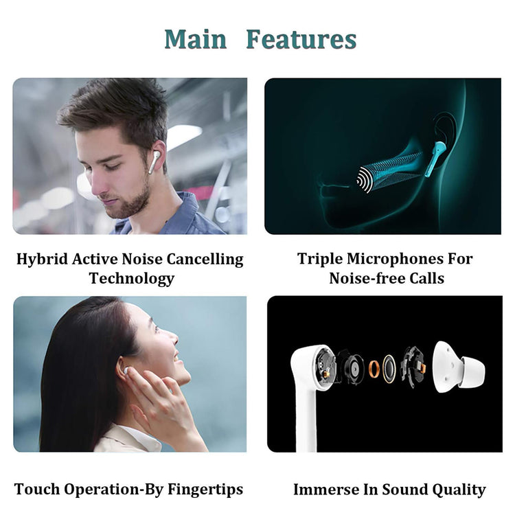 Questi auricolari utilizzano l'**ANC Ibrida**, combinando microfoni feed-forward e feed-back per bloccare in modo più efficace i rumori a bassa e media frequenza. Questo ti permette di goderti la musica o concentrarti sul lavoro senza distrazioni.