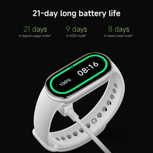 Dimentica l'ansia da ricarica: lo Smart Band 10 garantisce un'autonomia fino a **21 giorni** con una ricarica completa in circa un'ora. Goditi un monitoraggio continuo della saturazione dell'ossigeno nel sangue (**SpO2**), della frequenza cardiaca e un'analisi avanzata del sonno per migliorare la qualità del tuo riposo.